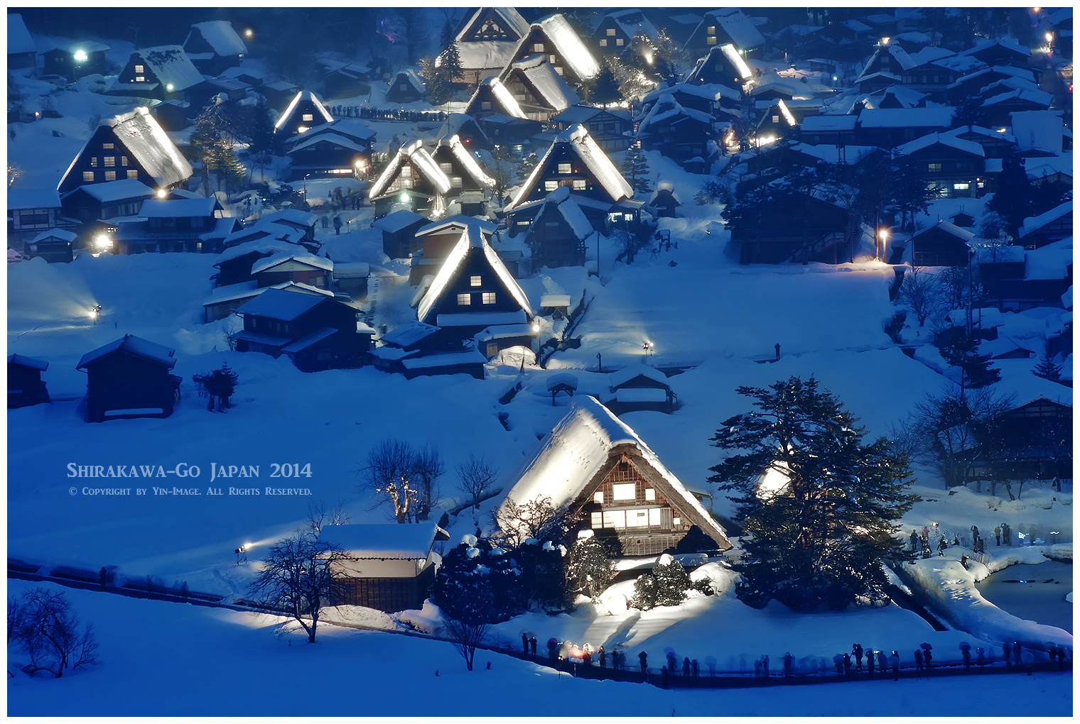 世界文化遺產日本岐阜縣的白川鄉合掌村位於日本的中部,每年均會舉辦一次點燈活動,一次約 7 天左右,由於只有假日點燈, 換算下來每年只有約 4 週的週末有舉行點燈活動,而冬季雪中的合掌屋彷彿是童話世界一棟棟的薑餅屋,以至一年只有七天的冬季點燈之夜更是攝影人最愛夢幻之景。
